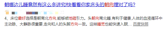 心理暗示。“相信这样的环境能够睡个好觉”,这样的想法会产生很强的暗示作用,令自己身心放松,香甜入睡。就寝时过度纠结朝向等问题,反而会令人处于过度警觉的状态,难以入睡。