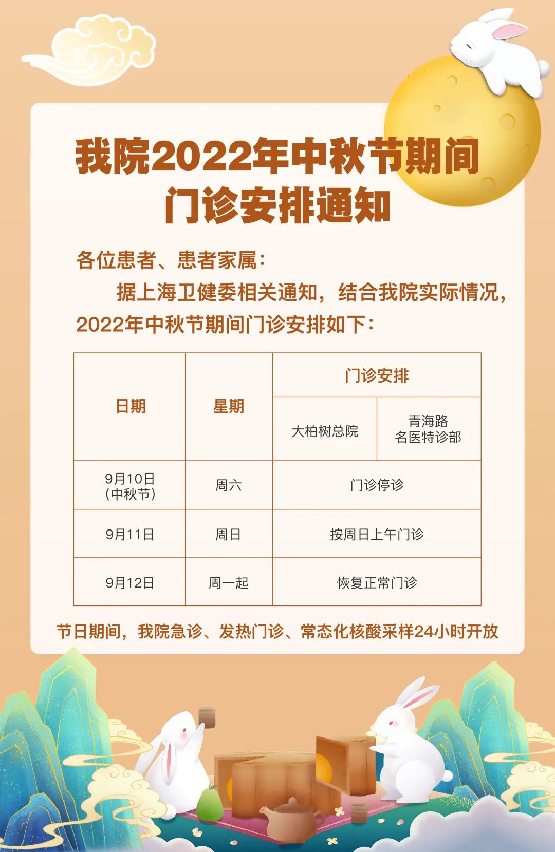 【中秋就诊指南】杨浦、虹口部分三甲医院的门急诊放假安排,人手一份,有备无患!