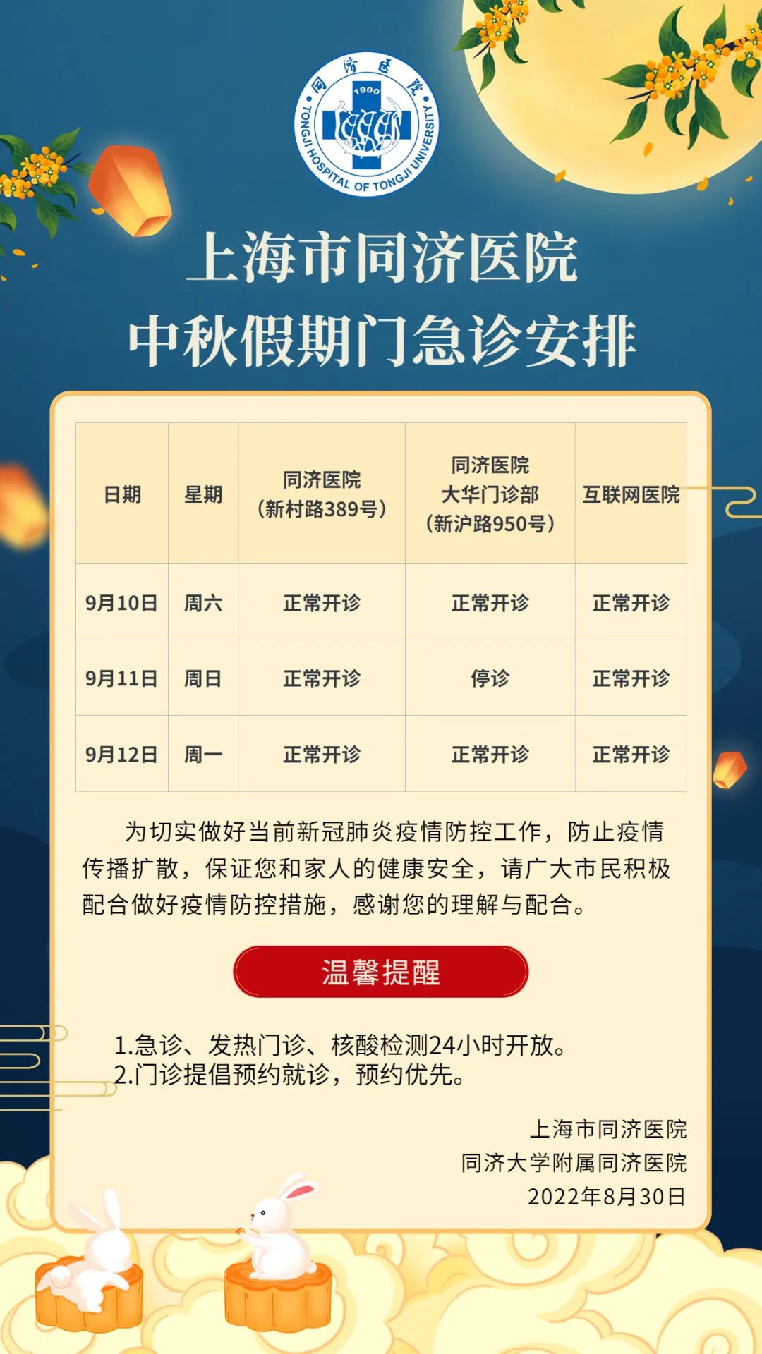 【中秋就诊指南】普陀、长宁部分三甲医院的门急诊放假安排,人手一份,有备无患!