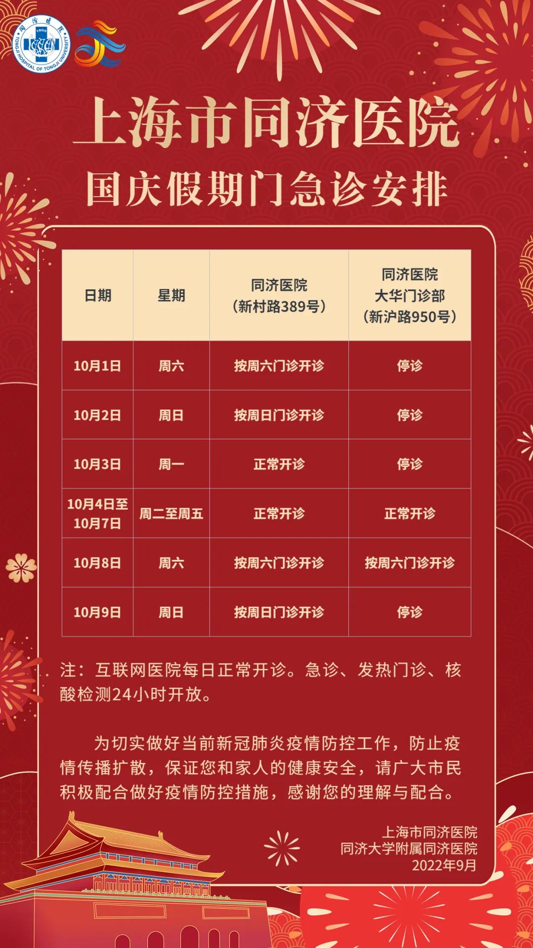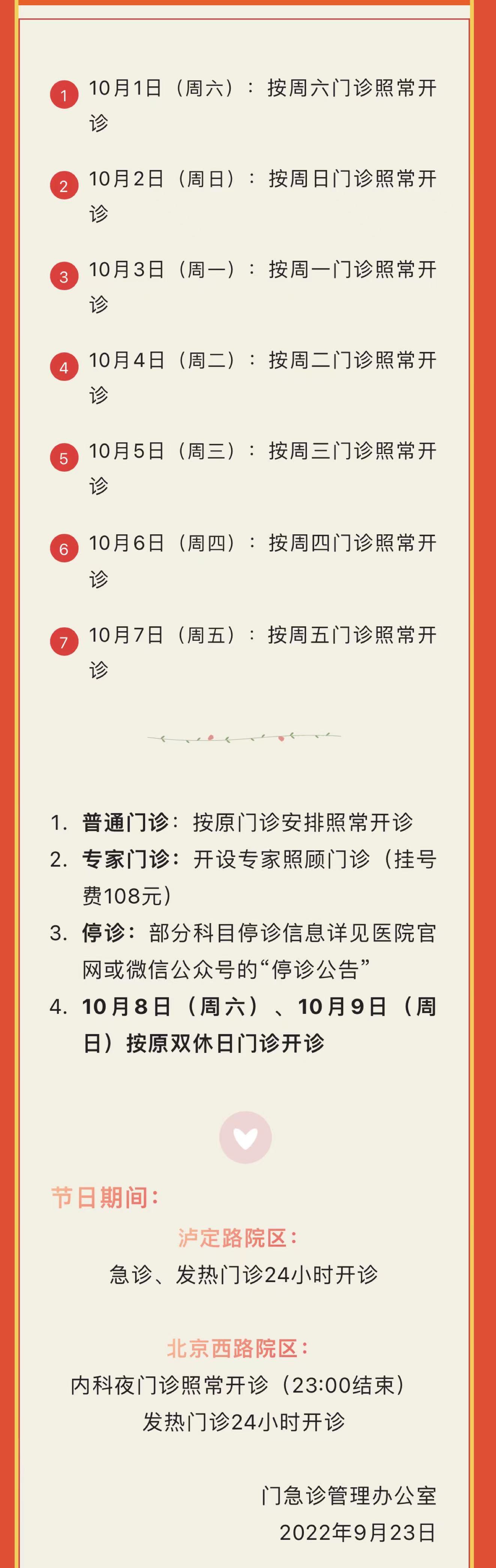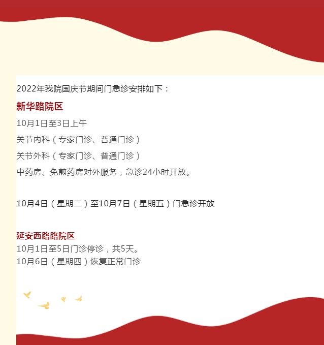2022年“国庆”假期即将到来,笔者搜罗了本市三甲医院的门急诊放假安排(部分医院假期安排待更新),有备无患,请相互转告哦!