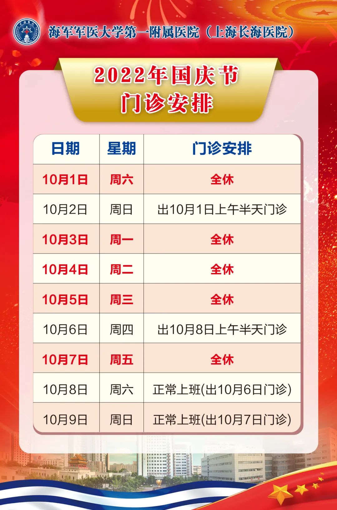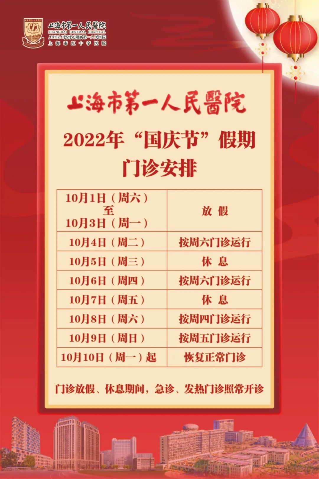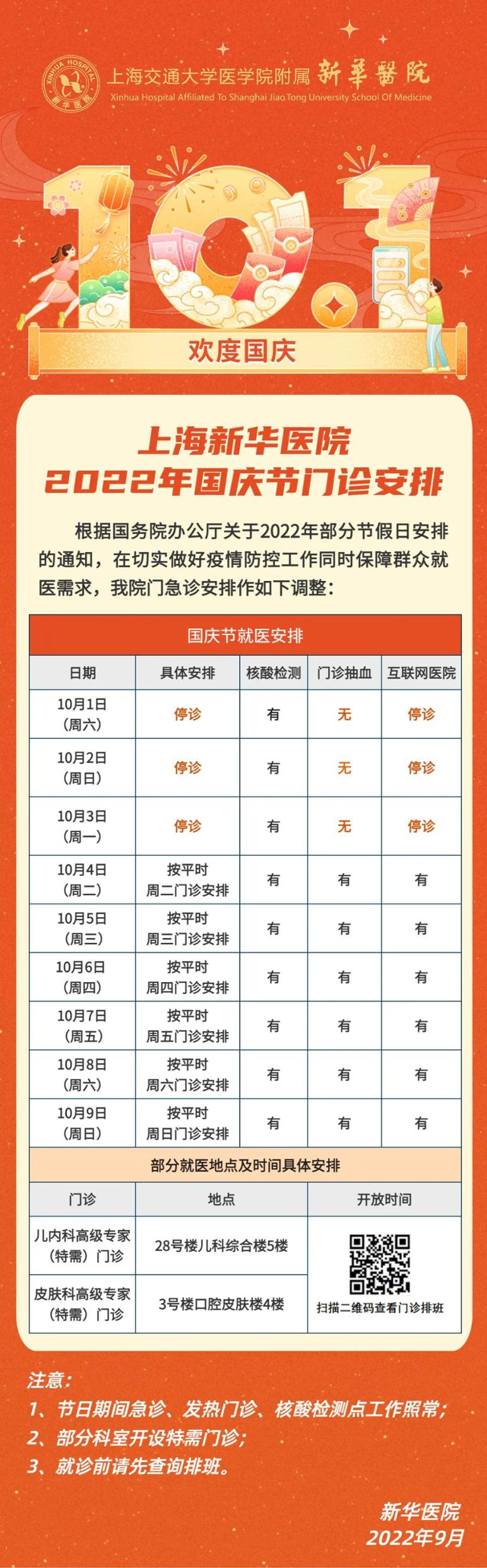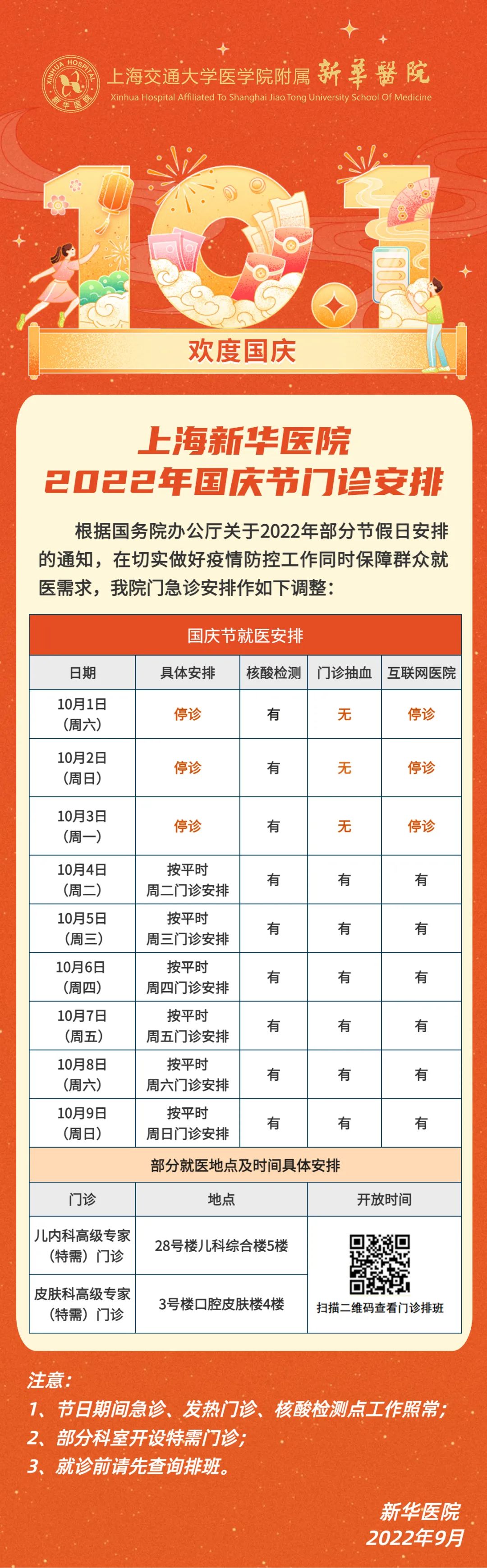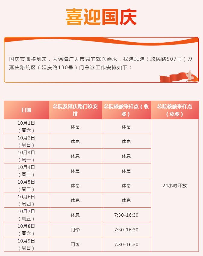 2022年“国庆”假期即将到来,笔者搜罗了本市三甲医院的门急诊放假安排(部分医院假期安排待更新),有备无患,请相互转告哦!