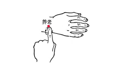 养老穴:位于尺骨茎突桡侧骨缝凹陷中。每天早晚各指压10~20次,坚持3月,眼球充血等症状能得到缓解。