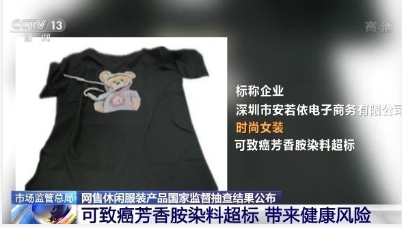 近期,国家市场监督管理总局开展抽检。在检测过程中,一件标称为深圳市安若依电子商务有限公司生产的时尚女装,被检出一种名为“联苯胺”的可致癌芳香胺染料超标,而且超标非常严重。
