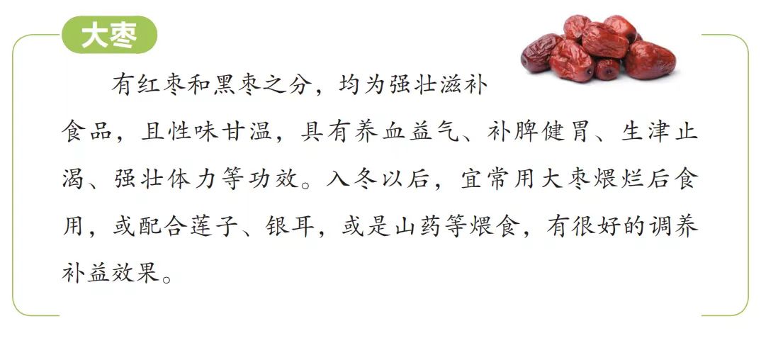 此外,冬三月还宜常吃芝麻、牛肚、羊肚、羊骨、鸡肉、鱼肉、栗子、花生、百合、木耳、燕窝、羊奶、豆浆、胡椒、砂仁、冬虫夏草、蛤蚧等。