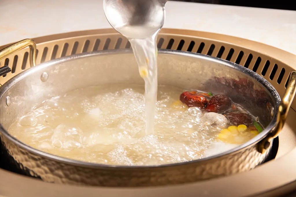 长期食用65℃以上的食物,患食管癌风险增高,因此吃火锅时一定要凉一下吃;而吃火锅时,喝冷饮对牙釉质、肠胃都有损害,建议喝常温、温热的饮品,比如菊花茶。