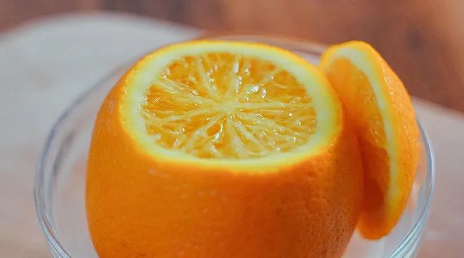 做法:橙子洗净后,割去顶部,形成一个盅,在露出的果肉上撒些许盐,用筷子戳几个洞,放入锅中蒸10分钟左右即可。