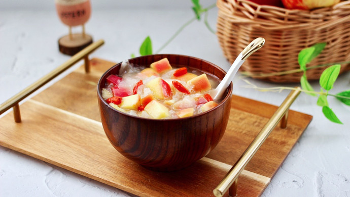 苹果性味甘凉,具有生津、润肺、健脾、益胃、养心等功效。枸杞子味甘性平,其具有滋补肝肾,益精养血,润肺止咳的作用。常喝枸杞苹果汤,可以调理肠胃、益胃养心,美白肌肤,还可以降低血液中胆固醇。
