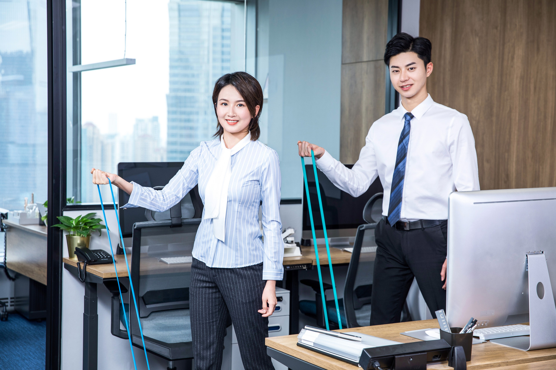 办公室巧用弹力带