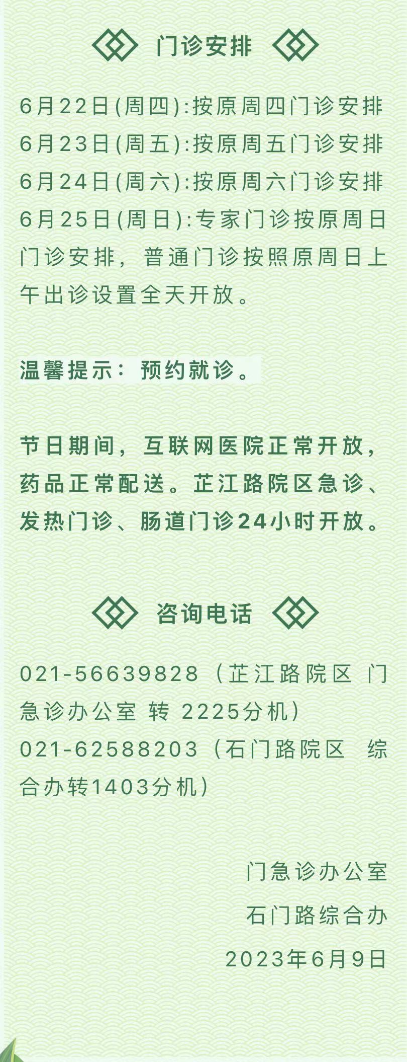 2023年端午假期即将到来,笔者搜罗了本市三甲医院的门急诊放假安排(部分医院假期安排待更新),有备无患,请相互转告哦!