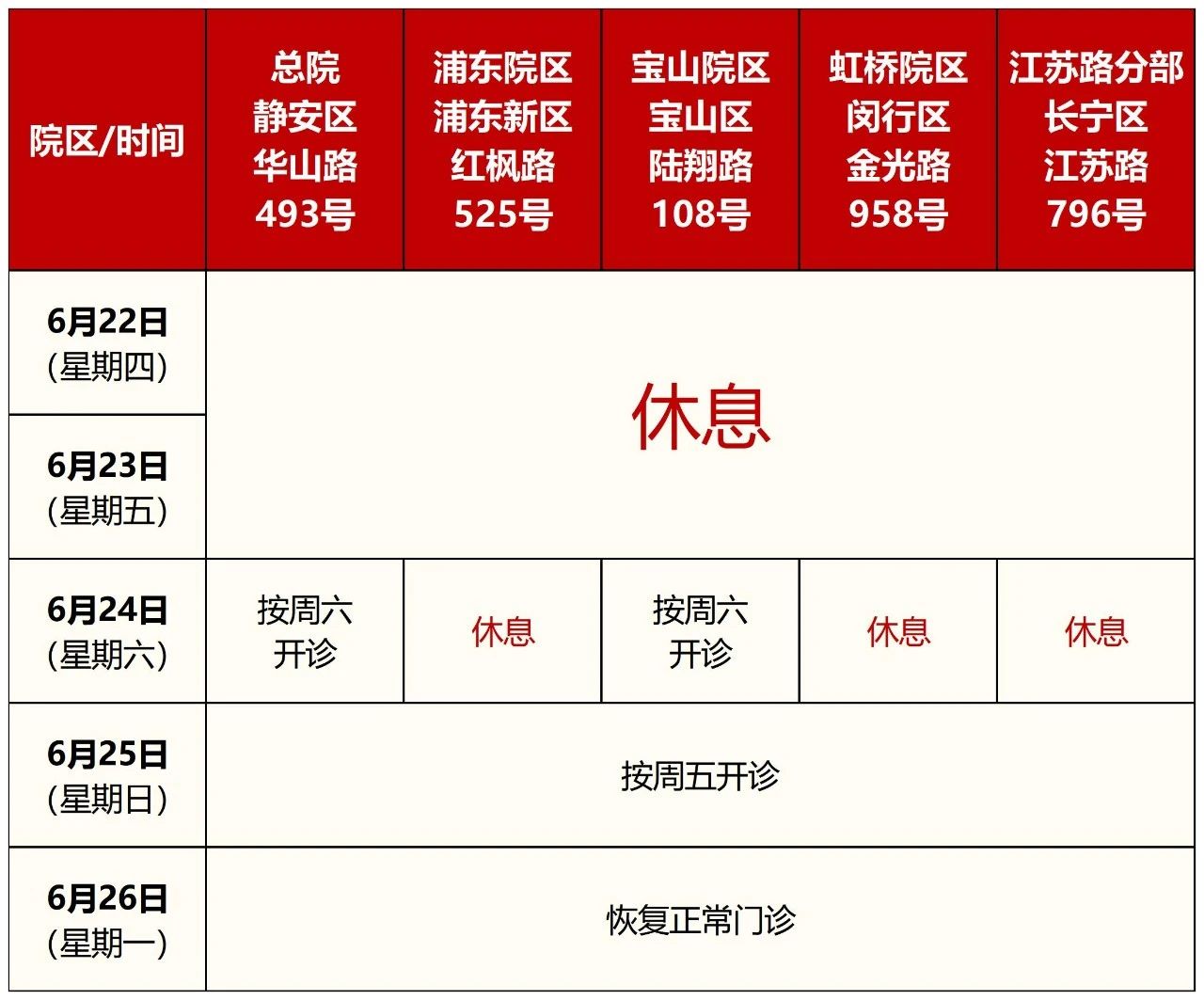 2023年端午节期间,复旦大学附属华山医院各院区线下门诊工作时间安排如下,互联网医院24小时运行。