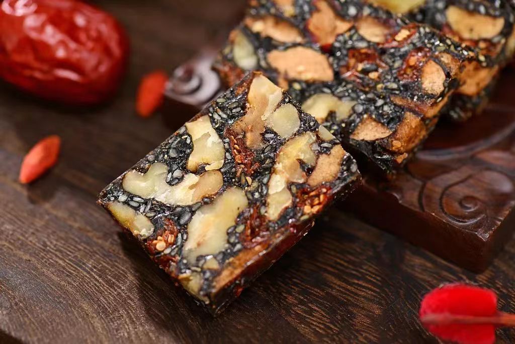 燕窝阿胶糕属于一款食品,不具有治疗功效。配料表前两位是黑芝麻、核桃,说明这两种食材的添加量相对较多,含有丰富的蛋白质、膳食纤维、钾、钙、镁、维生素E、B族维生素等。