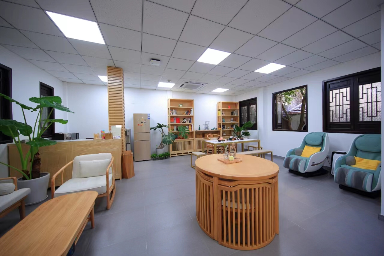 院工会打造健康支持性职业环境,对员工工作环境进行设计与改善,打造华山职工健康休息室“望山居”;建设职工系列健康场所,如手术休息室、办公室、值班室等,为员工健康的促进创造支持性环境;完善安全生产管理机制,保障员工健康。
