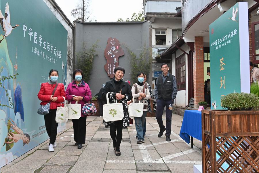 “春日融和,当眺园林亭阁虚敞之处,用摅滞怀,以畅生气。”一阵阵稚子童声,在一处中西合璧的院落中清脆地响起。十组亲子家庭正在中医科普专家的带领下,在新场海派中医文化基地内诵读《遵生八笺》。