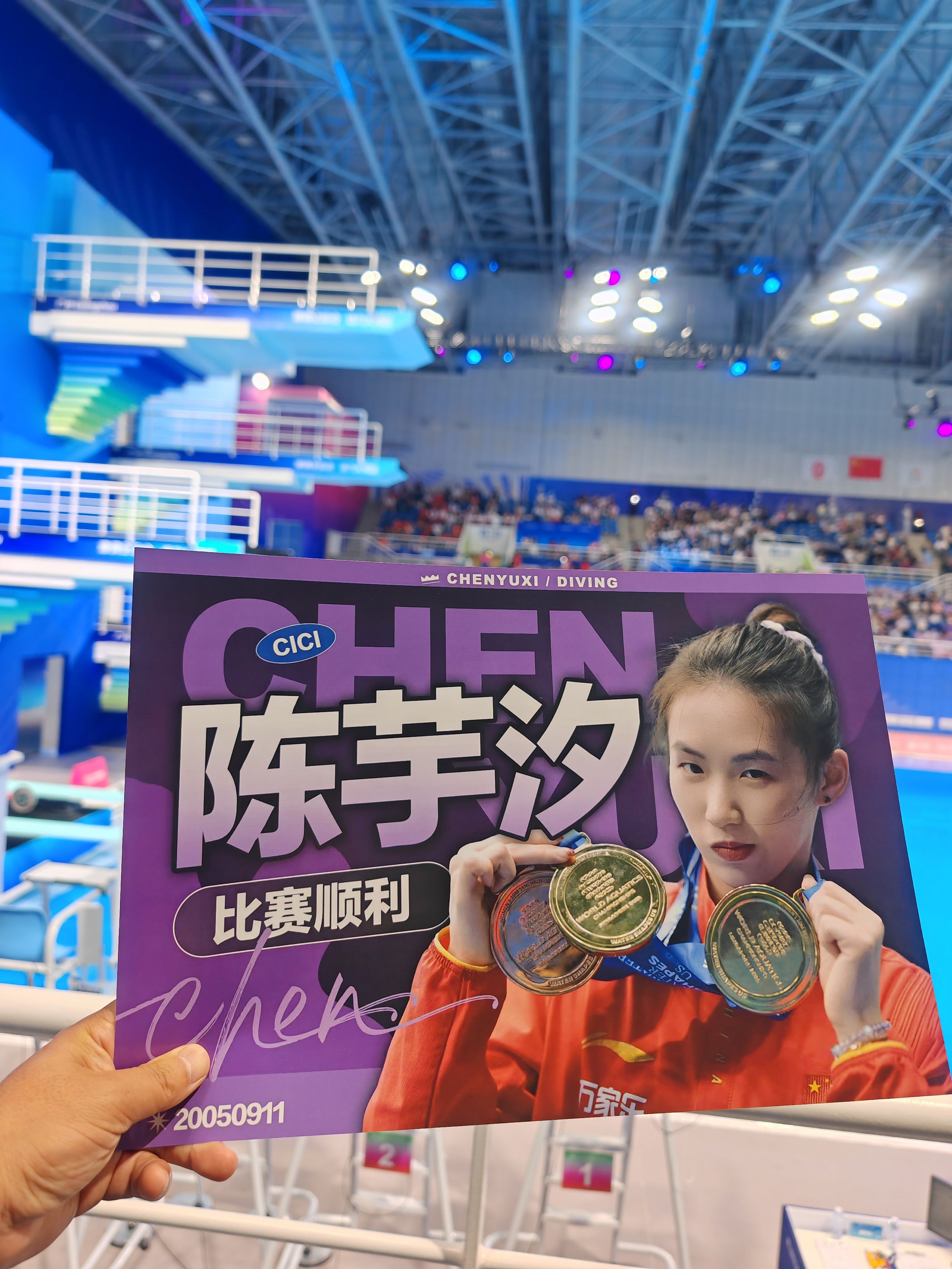 观众自制海报为上海跳水名将陈芋汐加油助威。劳动报记者王卫朋 摄影