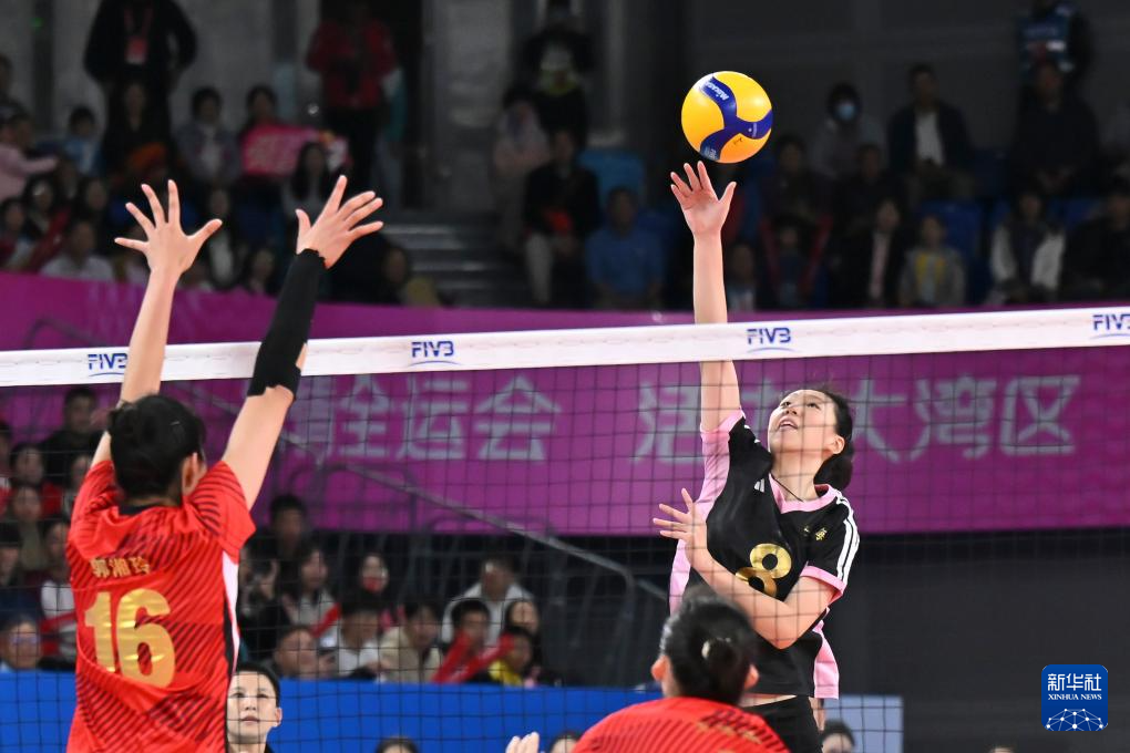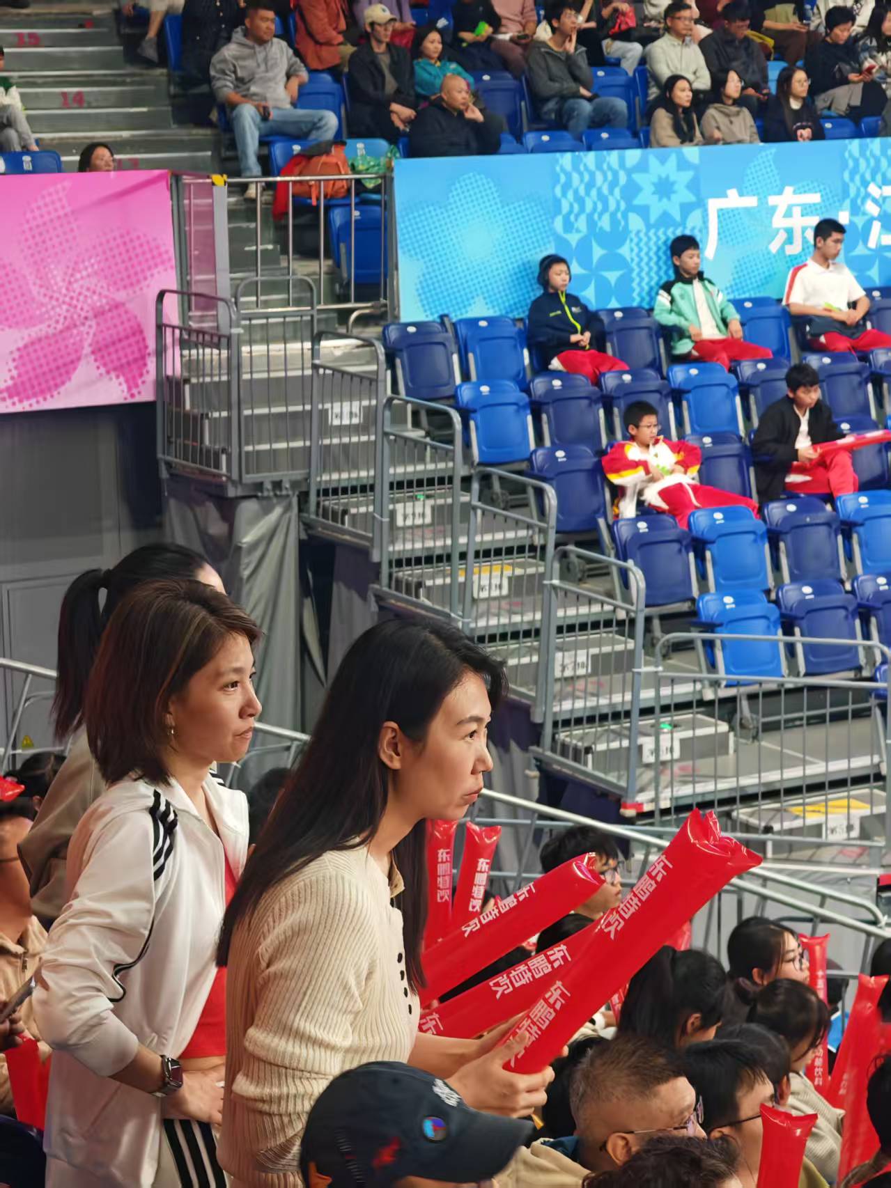江门是国内有名的排名之乡,这场青年女排的金牌战,吸引了三四千名球迷到场。赛事现场氛围热烈非凡,欢呼声、加油声与排球落地的清脆声响交织回荡。在现场播报员和志愿者的带领下,现场观众跟随音乐有节奏地舞动,局间休息时,动感粤语响起,更是犹如小型演唱会。