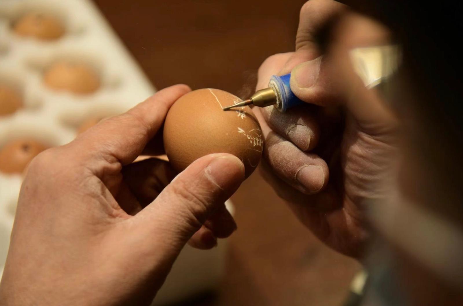 一枚鹅蛋上打1万多个洞,刻刀已换100多把