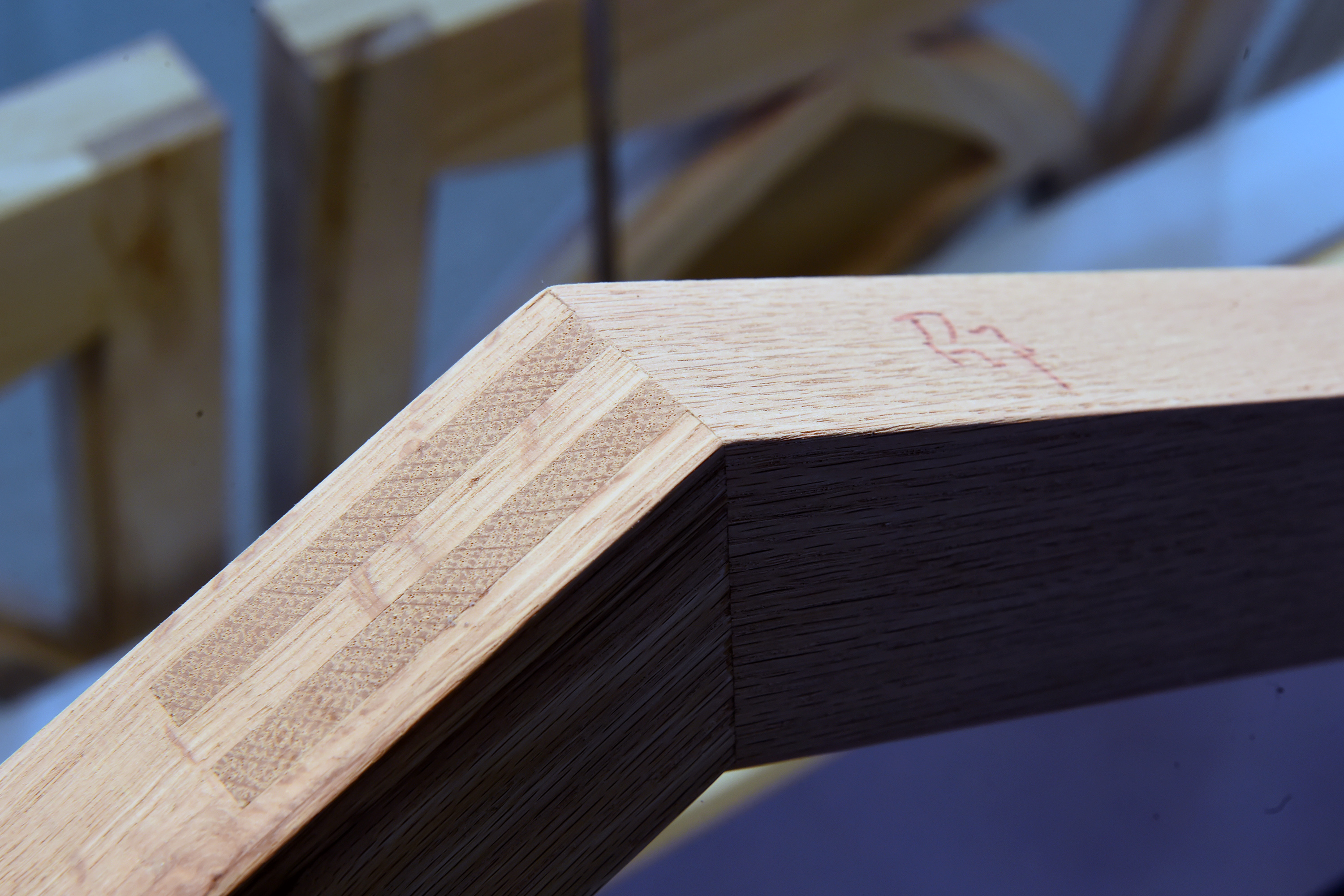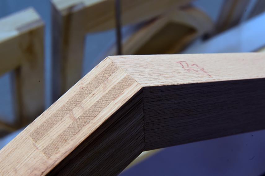 不过,在邵茹鹏的眼中,“卯榫”的精妙,绝不仅仅是两个木结构之间的简单“拼合”,而是三个、四个,甚至是更多木结构之间达到一种浑然天成的效果。如他在世界技能大赛中的作品“窗户”,就有十多个木杆件组成。且每一个卯榫结构都必须达到轻轻地推入、拔出,不松动、不摇晃。不能像老底子那些木匠一样,用锤子把卯榫“敲敲紧”。