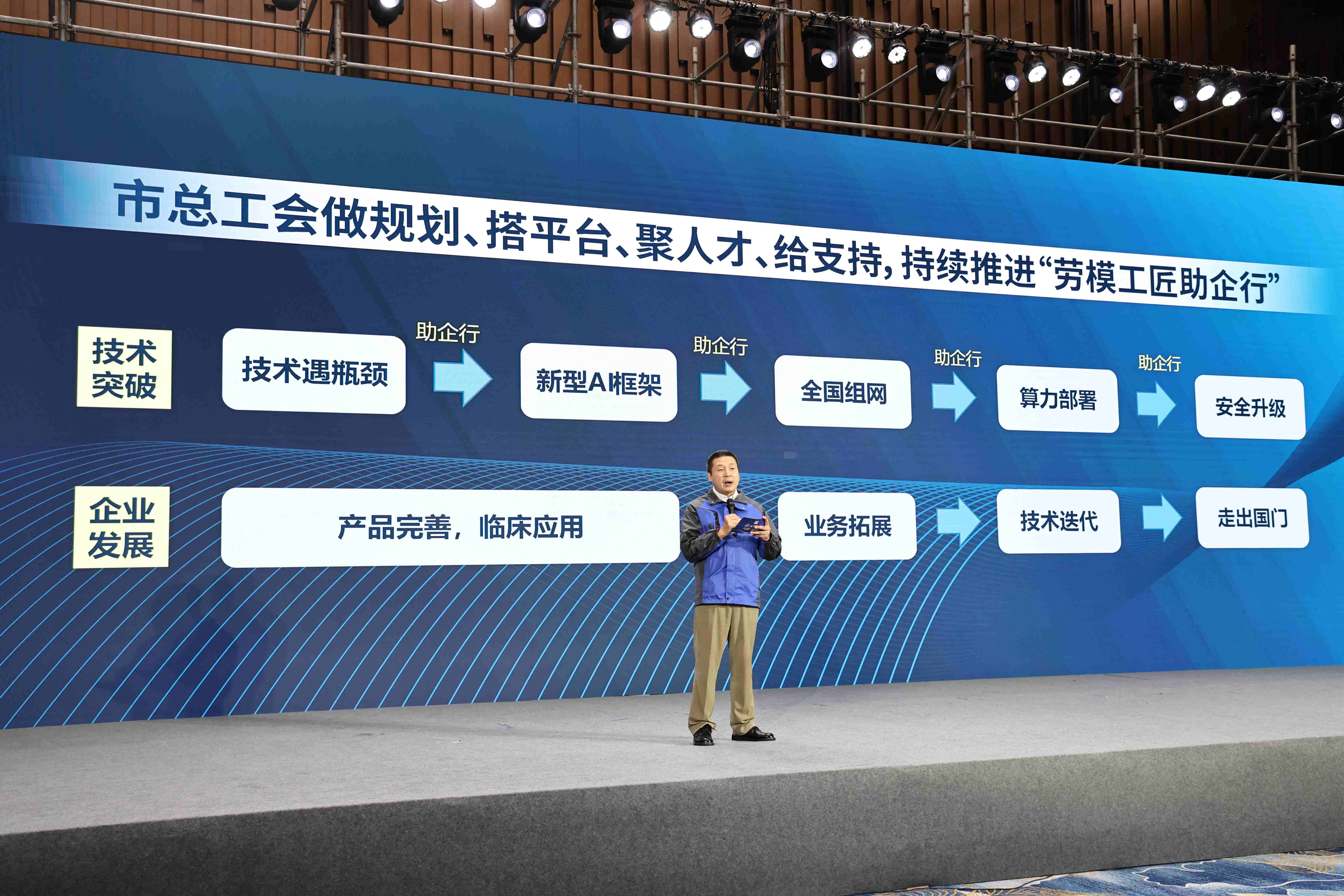 “工会因地制宜,为‘劳模工匠助企行’做好服务者,当好‘店小二’‘红娘’‘星探’和‘导演’,为企业、劳模工匠和职工搭建平台、舞台。”徐汇区总工会服务区内不同类型企业,徐汇区总工会副主席屠刚在交流中分享了区内“劳模工匠助企行”的场景——在徐汇举办的全市首个艺术品保税服务应用场景劳动技能竞赛上,一名专家评委为企业带来了难题的解决方案;在“赋能‘老字号’振兴徐汇专项行动”上,工会邀请全市顶尖劳模工匠为老字号把脉:工艺传承、人才培养、数字化转型,都得到了回应。“企业像是饿着肚子点外卖的顾客,劳模工匠是身怀绝技的大厨,而徐汇区总工会就是这个既懂顾客又知大厨拿手菜的‘超级平台’,想企业所想,想职工所想,让‘助企行’成为真正意义上的‘双赢剧场’。”