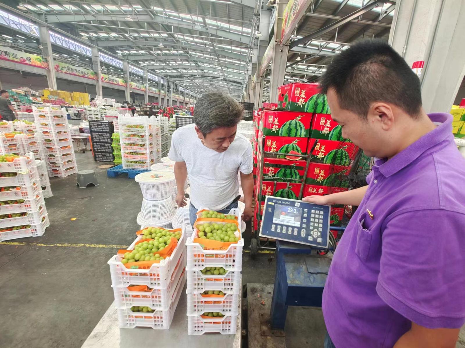 “日常一日三巡检,在市场里走一走,平均日行2万步。”西郊国际果品部见习经理潘峰告诉劳动报记者,目前,西郊国际是上海最大的果品批发市场,7个大厅共有224户商户,日均供应量在2200吨至2300吨,中秋国庆期间或能达到2600吨。