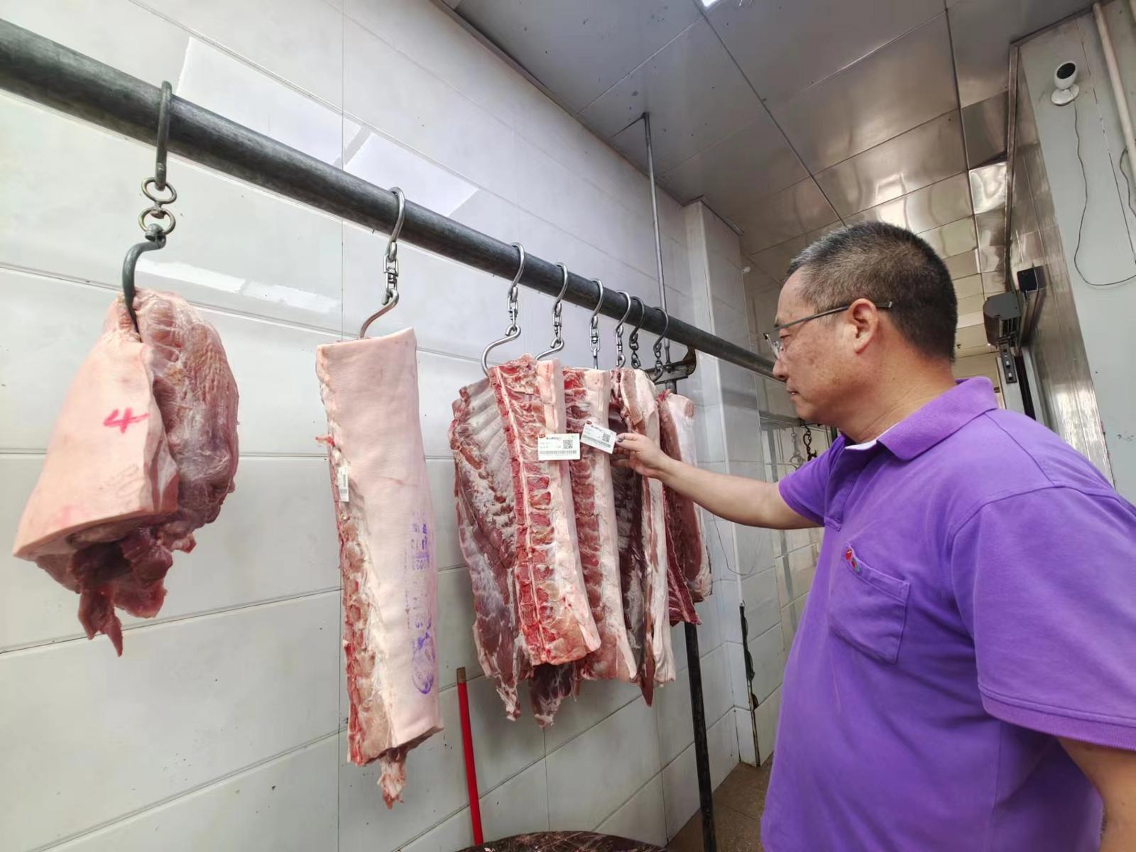 “猪肉到市场后,从准入、检测、处置、到追溯的每一道关,我们都要严格把控。”刘文明举例说,例如,虽然每一片猪肉已有检验检疫合格证,但在巡查时也做个“有心人”,在称重时不能低于25公斤,为避免病猪等疾病风险,份量不足、偏瘦小的猪肉片都将被剔除并无害化处理。此外,通常他会检查每一片猪的猪蹄部分,避免出现口蹄疫等病猪流入。“确保流通领域的生鲜猪肉都是安全可溯源的优良肉品。”