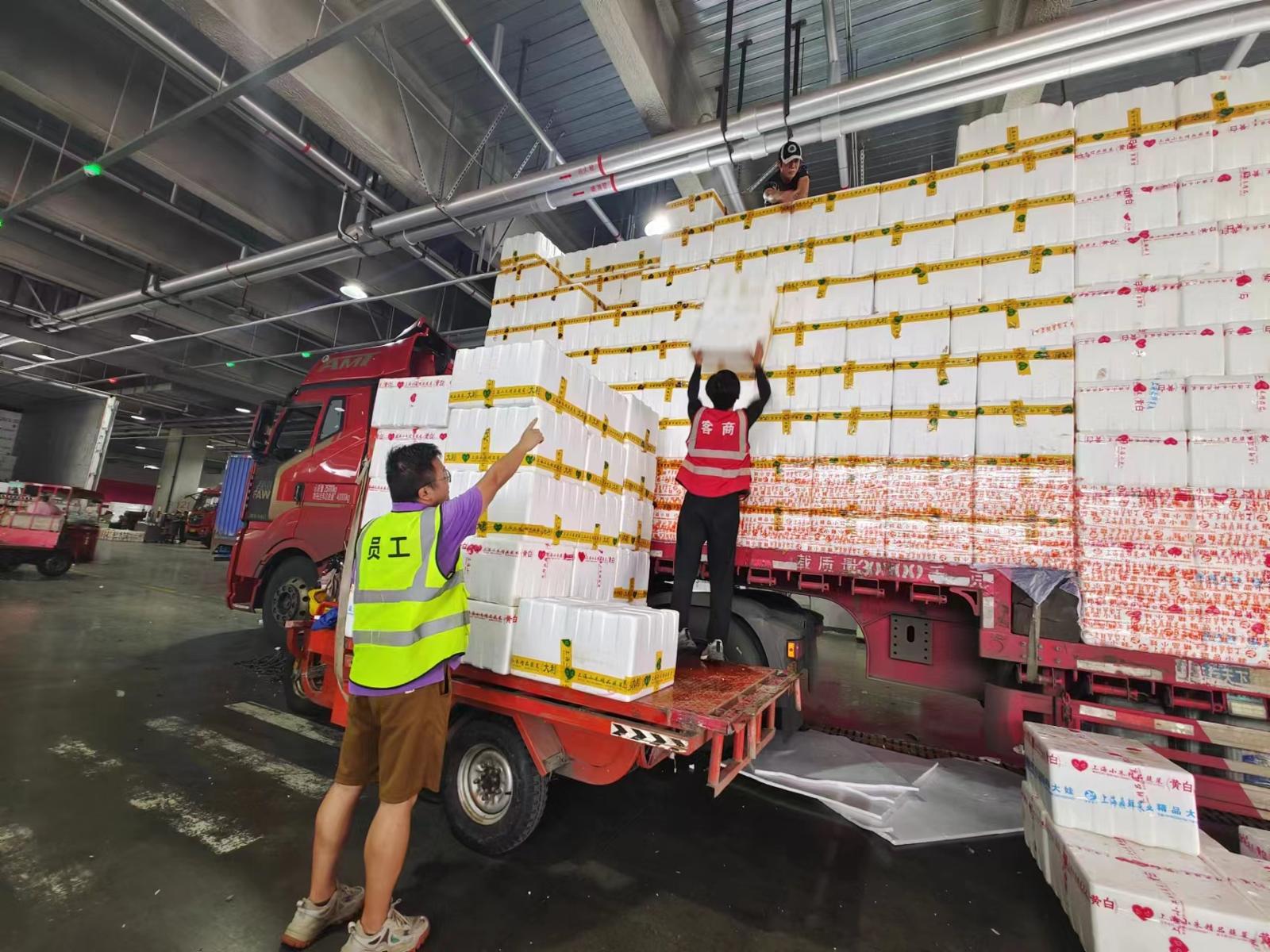 中秋、国庆双节临近,为力保供应高峰有序供应,沪上西郊、江桥两大批发市场的一线职工连轴转,守好每一班岗。