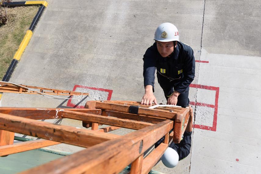 采访当日,来自青浦区各个消防站的队员也在这里集合,他们第二天便要在这里举行技能比武。曾洋成看着其他队的队员在完成挂梯的动作时忍不住乐了:“留一手了,明显保留实力了,看我们在瞧着,故意不暴露真实实力。等会我上去练的时候,可不管那么多,给他们看看我们平时练的成果。”