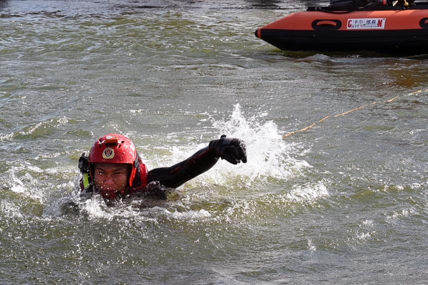 来自湖南衡阳的曾洋成,从小就在水草丰茂的乡村长大,“我的村子被湖包围着,从小我就爱游泳,水性不错。”在2017年,一次特别的招募彻底改变了曾洋成,当时他所在的中队招募队员去培训水域救援专业队的相关资格证书,曾洋成非常感兴趣,就提出申请。“我觉得那次培训就像给我点了一盏灯,为我照亮了努力的方向。”曾告诉记者,此后去到云南和广西,连续参加了两次专业的水域救援培训,他也顺利取得了水域救援教练员资格证。