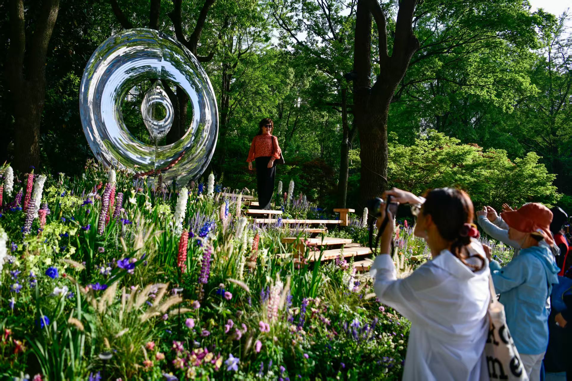 市民在拍摄精心设计的花境。劳动报记者 颜筱依 摄影