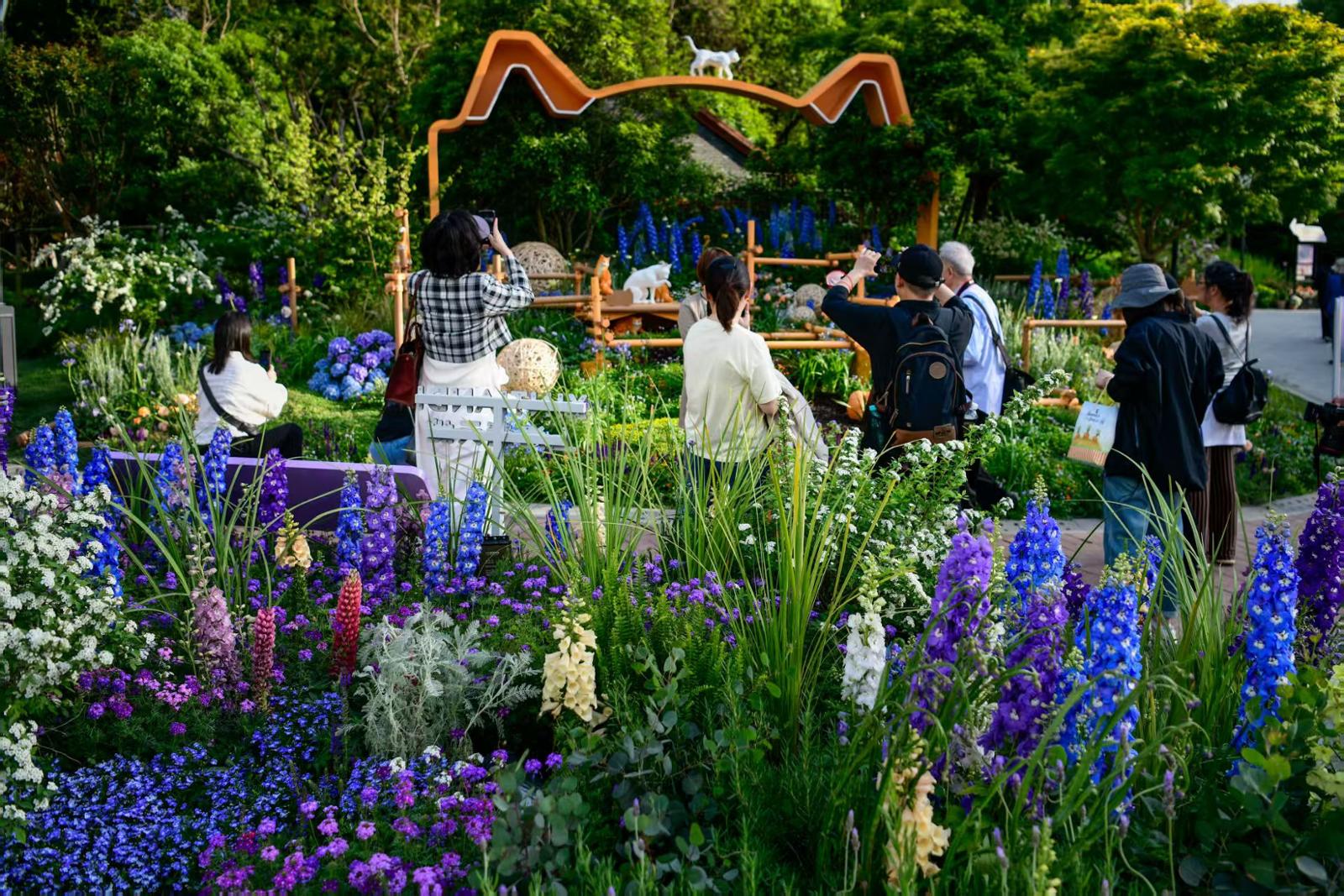 市民在主会场参观花境布置。劳动报记者 颜筱依 摄影