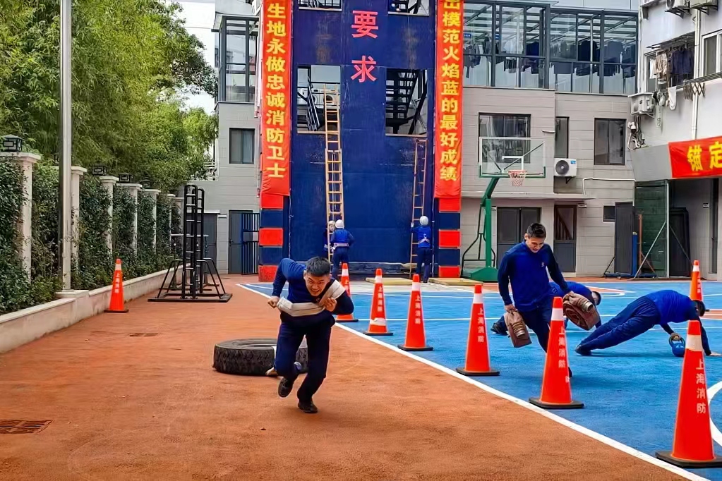 当记者一走进车站消防救援站,就感受到了操场上消防员们日常训练的火热之情。从模拟地震救援负重轮胎前行,到双手携带重约40斤的水带绕桩奔跑,再到六米拉梯攀爬,每一个科目的训练都是为了能够让自己在火场救援中加快速度,哪怕只是一秒,或许也能多营救一名被困人员。