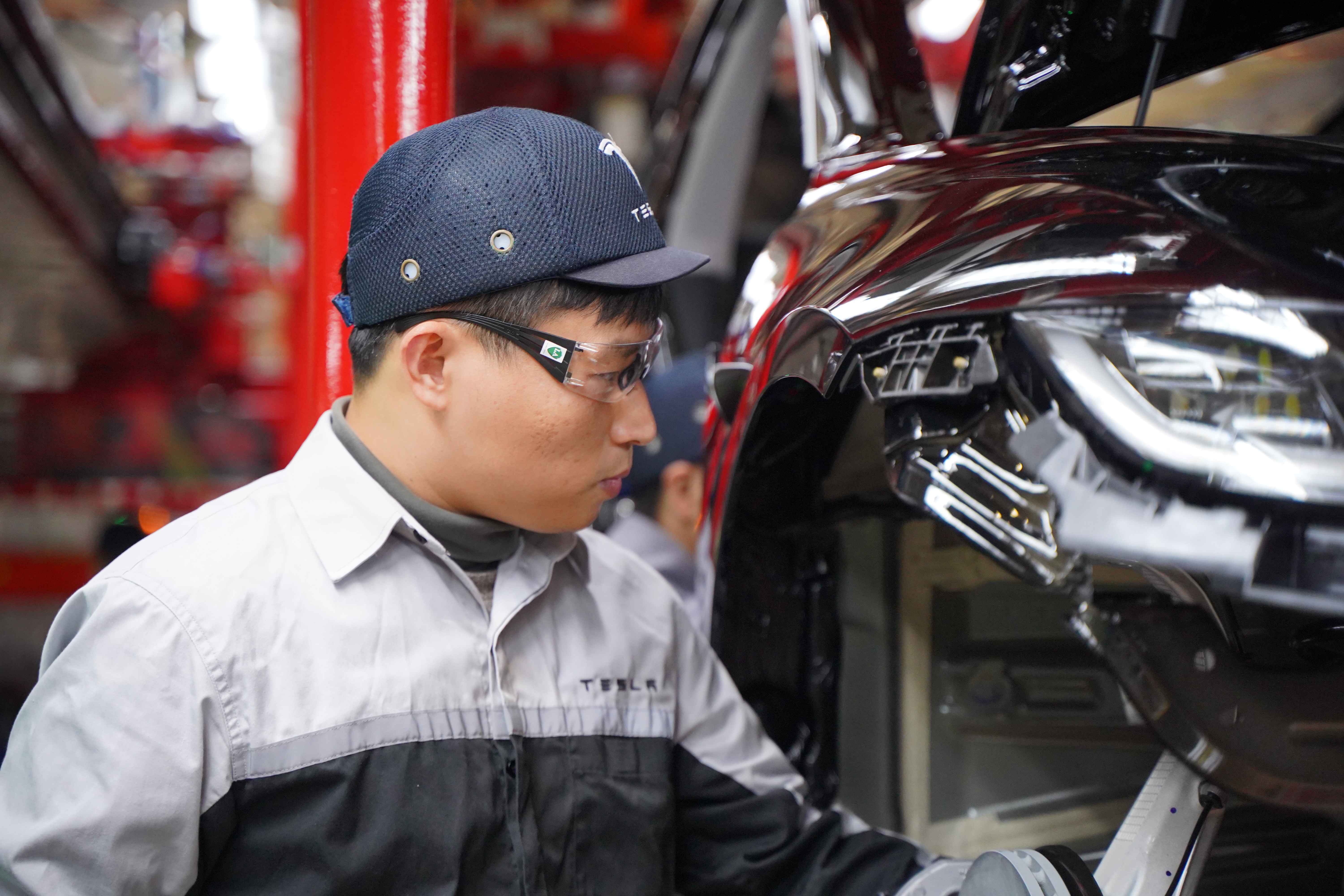 头图为正在岗位上全身心工作的胡超。特斯拉提供。