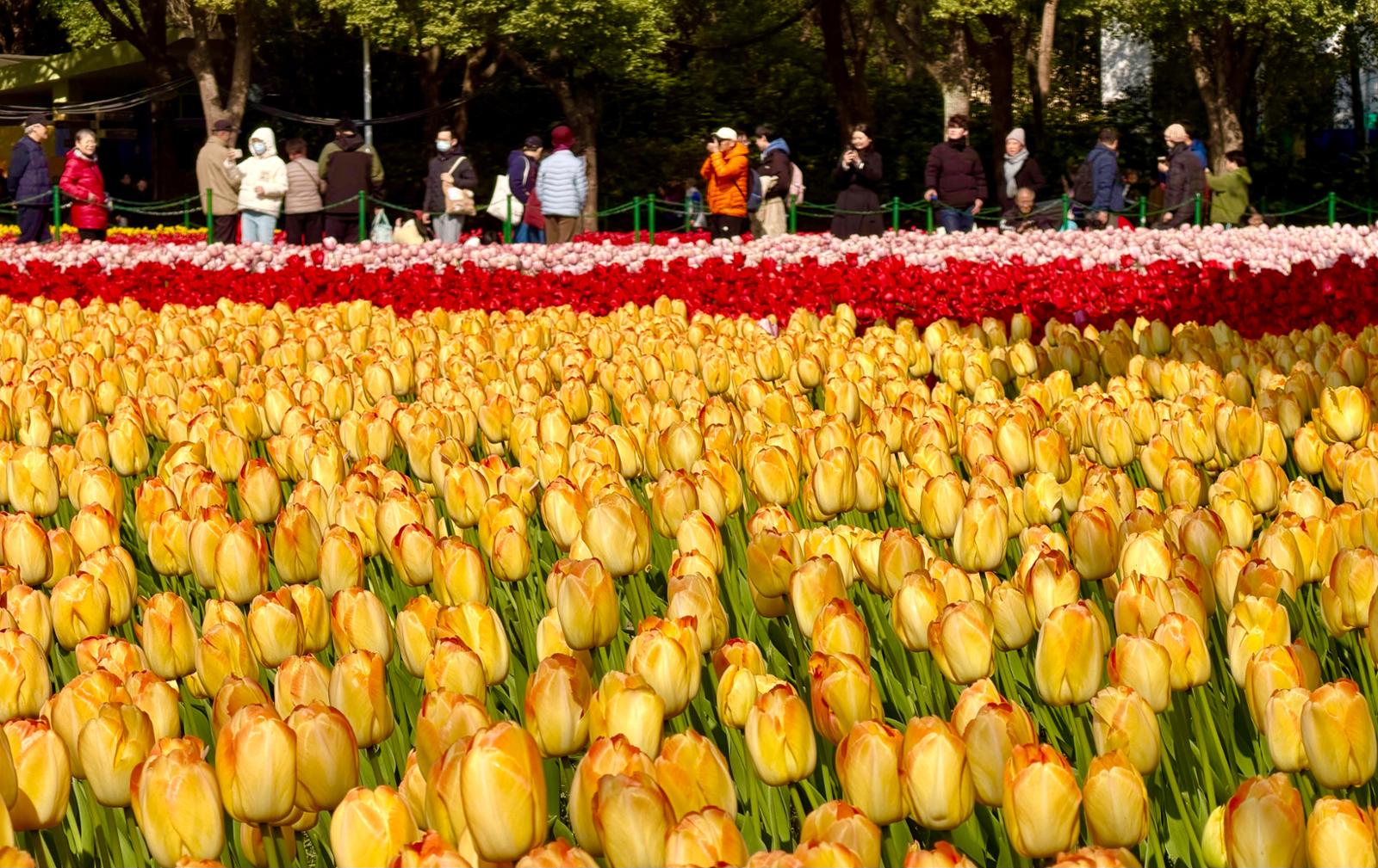 大宁公园内,百万株郁金香织就锦绣花海,一年一度的“静安花朝节”邀请市民共赴春日雅集。劳动报记者贡俊祺 摄影