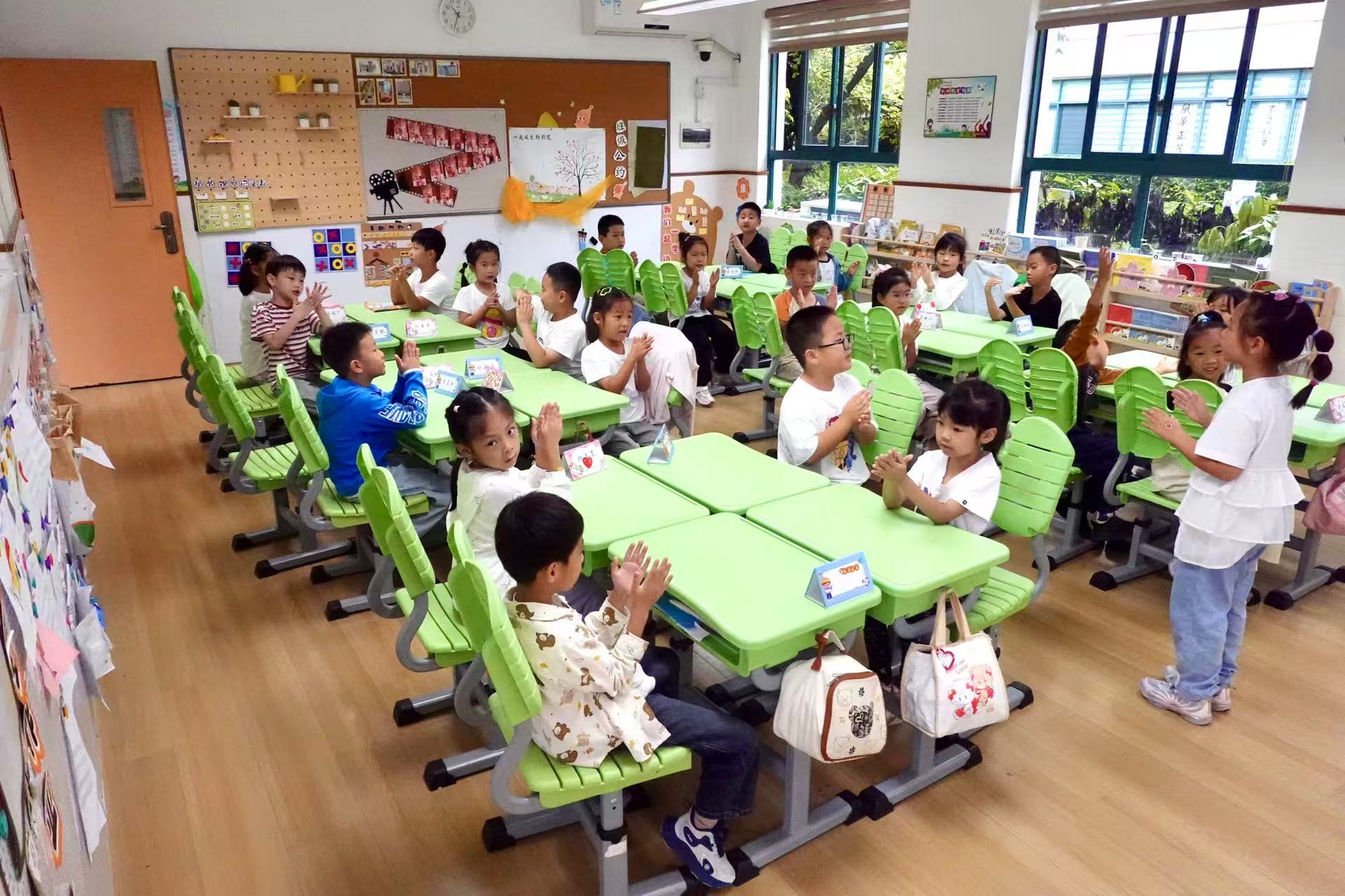 小班化教学改革,怎么改?最直观的是物理空间上的变化。暑假里,工农新村小学专门为一年级新生改造了两间专属教室,将原本在教室里的书包柜移至走廊,进一步释放学生活动空间,在走廊增设生活功能区与专属书包柜;在教室里打造阅读角、涂鸦墙及洞洞板展示区,既满足学生课间创作、休闲需求,也为学科学习成果展示提供了专属平台。“这样温馨的环境,与幼儿园相差不大,对于刚升入一年级的孩子来说,可以给他们心理上的安全感。”居臻殷说。
