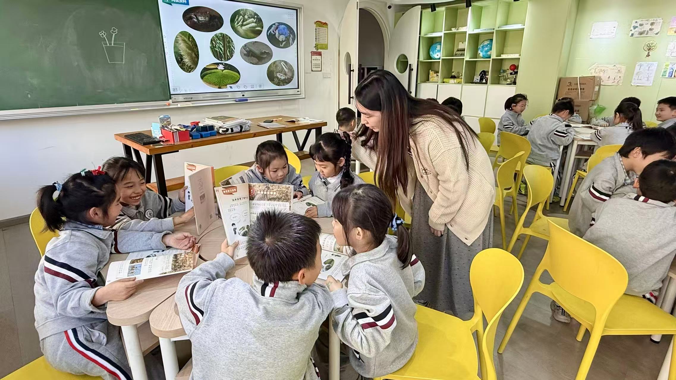 课堂也在发生变化。“以前教室像秧田一样,一行一列,整整齐齐。现在是分组坐,24个孩子分成6个小组,孩子们面对面坐,各组之间留有空间。”居臻殷校长带一个班的道德与法治课程,她最明显的感受就是,这样的围坐方式可以更好地观察到每个孩子的表情、动作、状态,以前可能活泼机敏的孩子更容易被看见,现在那些害羞的孩子也能兼顾到。