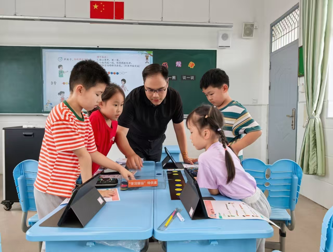 张军还在教室里设置了一个“学习驿站”,同学们在这里领取分层学习资料、任务卡,也可以把这里当成“树洞”,和同伴们相互留言。张军说,老师和孩子们的关系也发生了变化。学生们不再正襟危坐,小组交流学习成了常态,而老师们也可以更细致地观察每位学生的学习状态与进度,一些曾经在大班额教学中被忽视的因素,在“小课堂”里被精准捕捉。