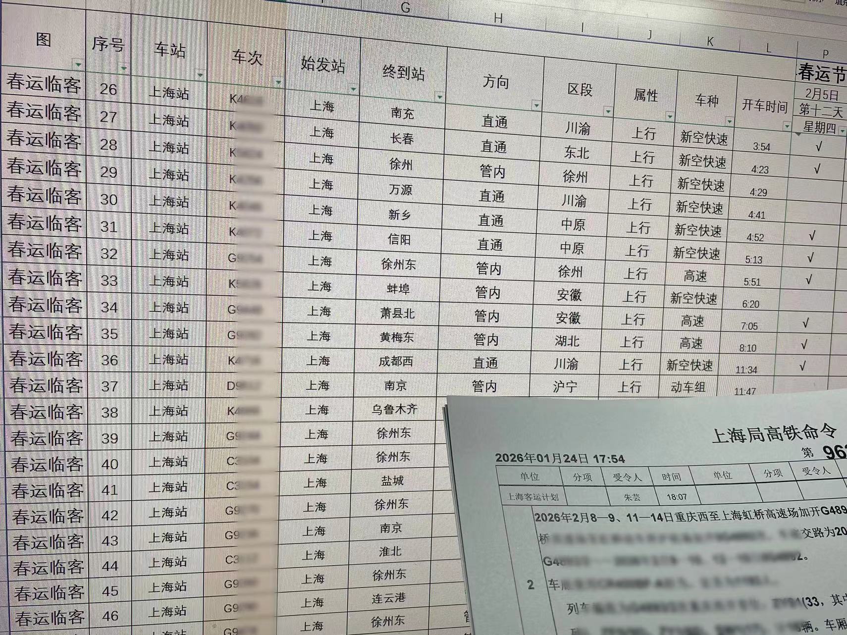 可以说,从客流研判到方案落地,从运行图绘制到全程护航,每一趟临客的诞生,都藏着他们为万千游子铺就回家路的用心与坚守。上海开往贵阳、徐州等方向的春运临客,正是无数春运加开列车中的生动缩影。