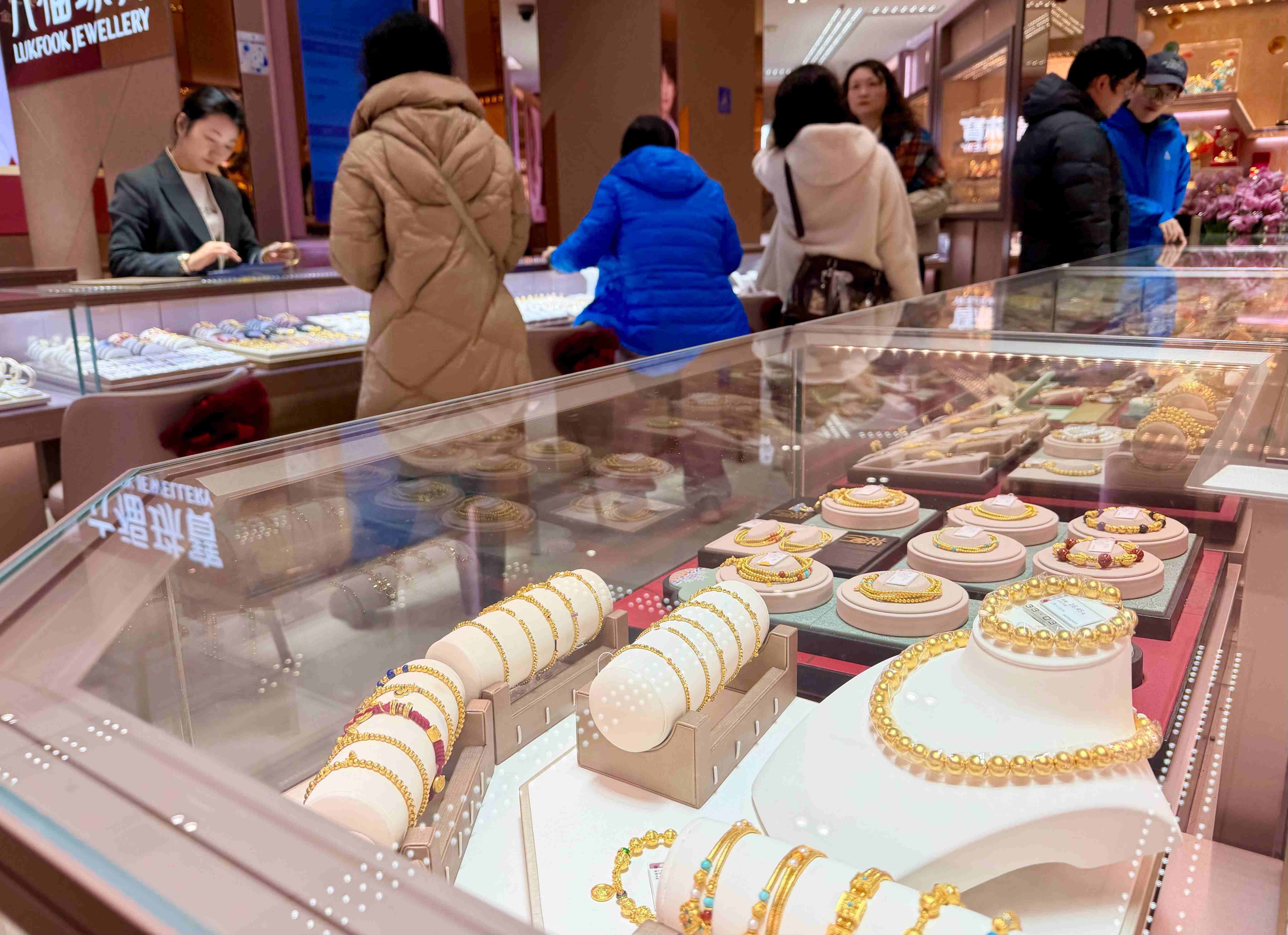 图为消费者正在购买金饰产品。劳动报记者 贡俊祺摄影