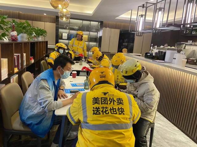 如今,外卖小哥、快递员在市民生活服务、城市物流配送中发挥着举足轻重的作用。尤其在常态化疫情防控期间,正是他们默默坚守在岗位上,才让市民群众获得更多便捷。长期以来,小哥们的健康问题也牵引着工会娘家人的心。在送温暖的启动活动上,曲阳路街道总工会除了为小哥们送上了一包包红红火火的新年慰问品,更特意为他们安排了统一的疫苗接种服务,免去他们来回奔波的辛劳。曲阳路街道总工会工作人员还不忘嘱咐他们:”大家冬季要做好防寒保暖,这家爱心接力站不仅是2021年的上海‘十佳’更是上海2021年全国‘最美工会户外劳动者服务站点’之一,以后你们有需要,都可以来站里取取暖、歇歇脚、喝口热水,这儿24小时为你们敞开大门!“小哥们高兴地说道:“感谢街道总工会各位老师们对我们的慰问,你们太贴心了,我们收到了这份来自冬天最温暖的礼物,今后会更加持之以恒地做好本职工作和个人防疫防护的。”
