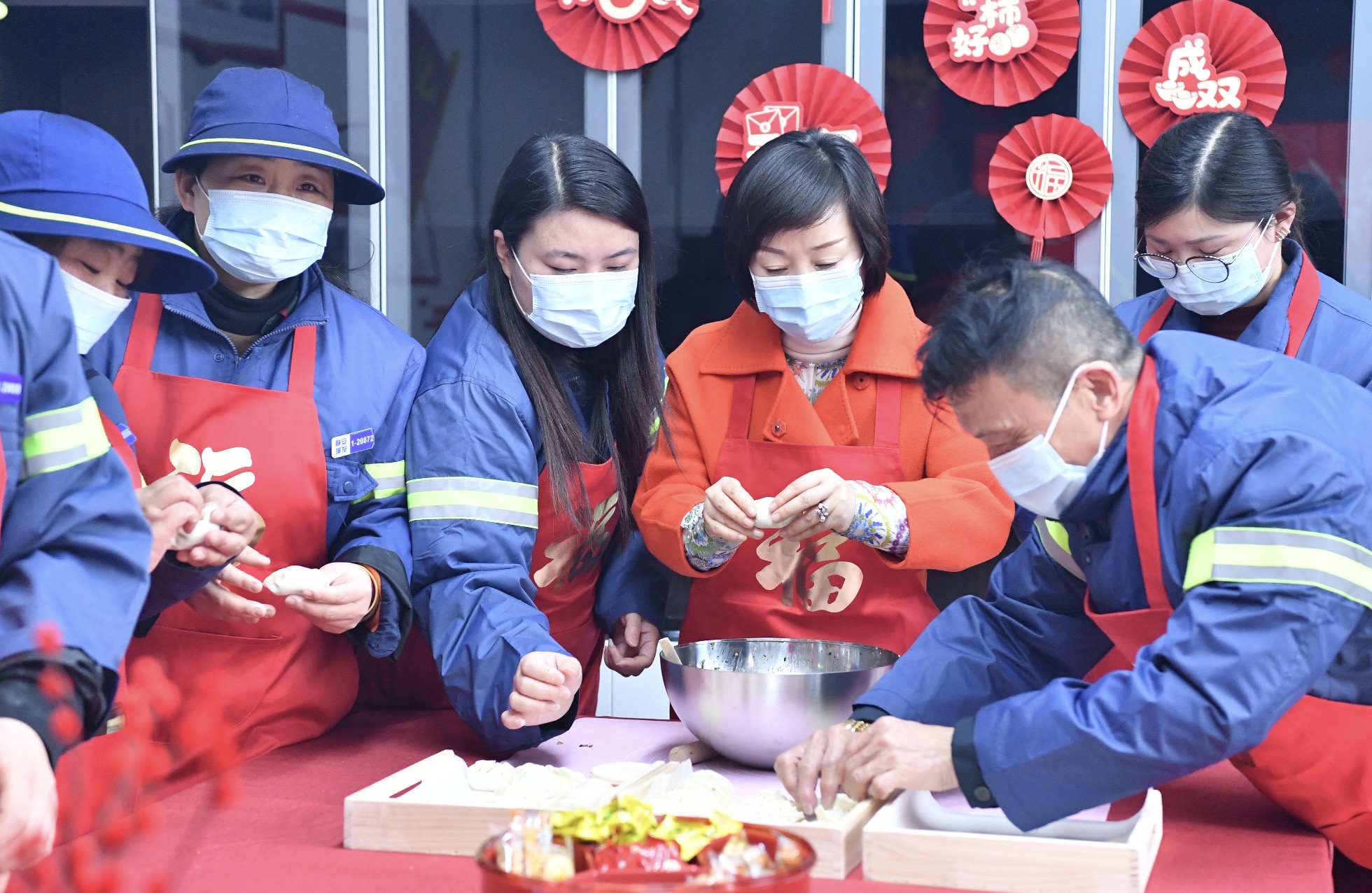 热腾腾的饺子、红艳艳的窗花……1月17日中午,静安区总工会职工援助服务中心的爱心接力站内洋溢着一片融融暖意,户外职工“回娘家”活动在这里举行,来自静安城发公司的环卫工人、顺丰快递小哥、专车司机等户外劳动者齐聚一堂,与静安区人大常委会副主任、区总工会主席林晓珏,静安区总工会党组书记、副主席许俊等一起包水饺、贴窗花,提前感受新春味道。
