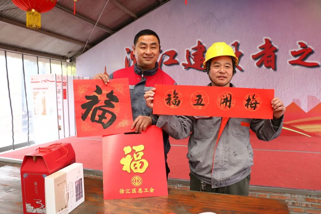 在徐汇滨江建设者之家,已经在上海打拼十余年的水电工郭成林今年将留守工地值班,接过徐汇区总工会赠送的“福”字,他真实感受到了浓浓的新年气息,笑着说,“和工友吃个年夜饭,跟家里打个视频电话报平安,我今年安安心心在上海过年了!”