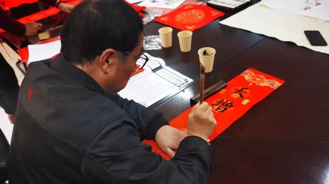 栩栩如生的小老虎套上滑雪板、墙角枝桠伸出一串葡萄、春联里写上对新春的祝福……日前,8名书画家来到徐汇工人文化体育中心,挥毫泼墨写春联,水墨丹青绘年画。