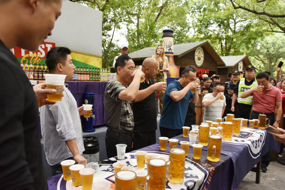 而第六届“寻找沪上啤酒速度达人竞饮”比赛现场,也吸引来自全国各地的民间达人频频举杯畅饮,纪录不断被刷新,大奖华为5G手机最后被来自上海的崔先生赢得,他以6分钟喝掉3500毫升啤酒的速度荣获本届总冠军,正应了他的赛前宣言“气吞山河,勇夺冠军!”