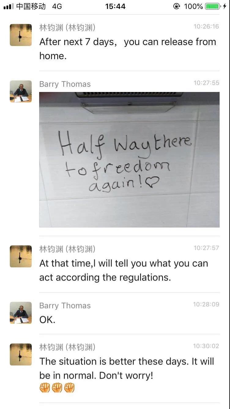 (好邻居老林也经常微信鼓励巴里)