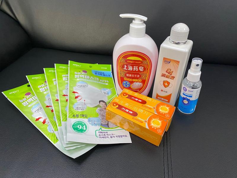 “张老,这是口罩、消毒液您收好,最近网上销售的口罩您千万要当心,不要轻信”