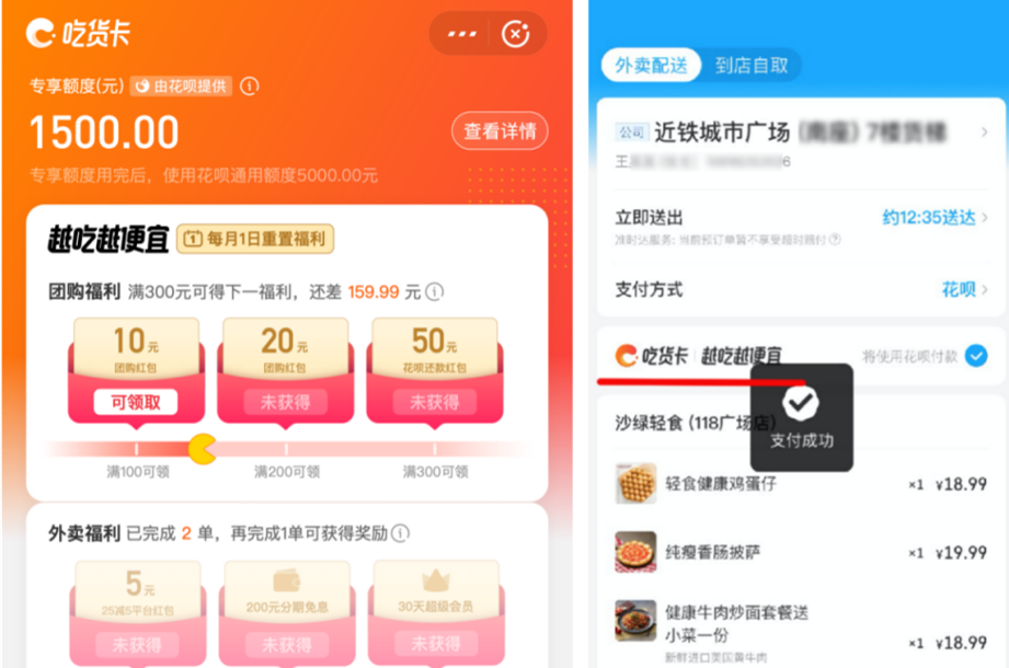 此次“城市生活周”中,口碑饿了么将首次上线“吃货卡”,这款与支付宝花呗联合打造的产品,可以先吃饭后付款,甚至分期还款。开通“吃货卡”后,用户每个月有最高1500元专享额度,无论是用支付宝点外卖,还是到店结账,都可以先吃后付。