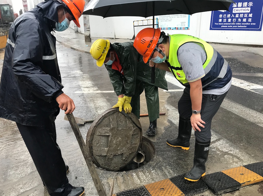 鲜有人知的是,建筑工地防汛绝不仅限于施工场所,包括周边的居民区也要有所兼顾。“武宁路沿线的民宅因为地势较低,所以我们在施工时也特别关注。“史传奇说。考虑到路边的雨水收集井在面对大暴雨的情况时,会出现无法快速排水的现象,为此,在启动防汛防台应急举措后,史传奇也会组织工人迅速准备沙袋,铺设在沿街,以避免雨水灌入小区。