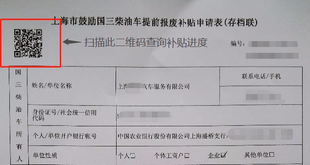 针对车主特别关心的补贴进度。已申请提前淘汰补贴的国三柴油车车主,可以通过扫描“上海市鼓励国三柴油车提前报废补贴申请表”左上角的二维码,实时查询补贴发放进度。管理部门将对补贴工作进展和资金拨付情况及时进行更新。