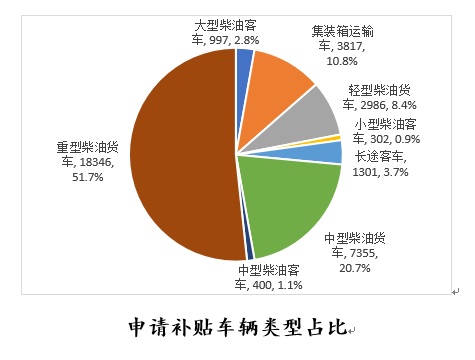 截止目前,本市已有6.6万辆国三柴油车登记申请报废,实际已完成报废4.69万辆,其中3.68万辆提出了补贴申请。从已申请补贴的车辆类型看,重型柴油货车占51.7%,中型柴油货车占20.7%,集装箱运输车占10.8%。从减排效益看,经初步测算,三类主要大气污染物VOCs、NOx和颗粒物的年减排量分别达到1242吨、6638吨和614吨,减排效果显著。从环境质量改善上看,截至9月23日,全市AQI优良率为85.8%,较去年同期上升2.3个百分点;PM2.5浓度为32.4微克/立方米,较去年同期下降6.9%;特别是与机动车污染排放密切相关的NO2浓度为34.4微克/立方米,较去年同期下降10.2%。