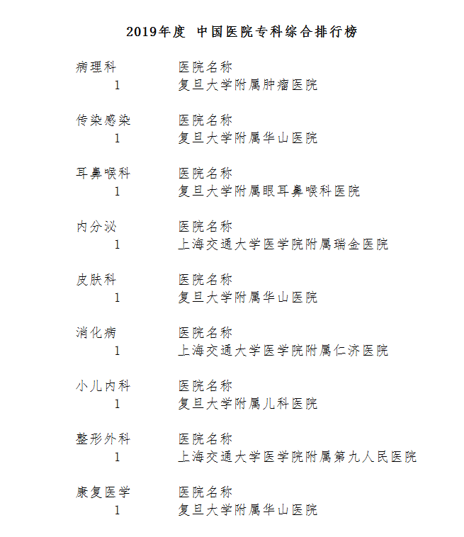 这是复旦大学医院管理研究所作为独立第三方开展的公益性学科评估项目,已是复旦版中国医院排行榜连续第十一年发布。