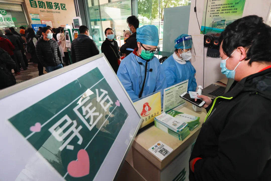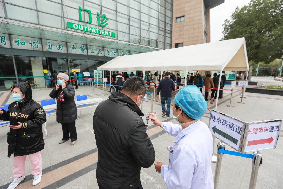 医院门诊大厅前,搭建了一个白色的雨棚,患者排着队依次进入,没有随申码的需要做一个流调登记,总体速度还是挺快的。进门诊大厅的同时,还有一次“无感”的体温检测,安全感十足有没有~